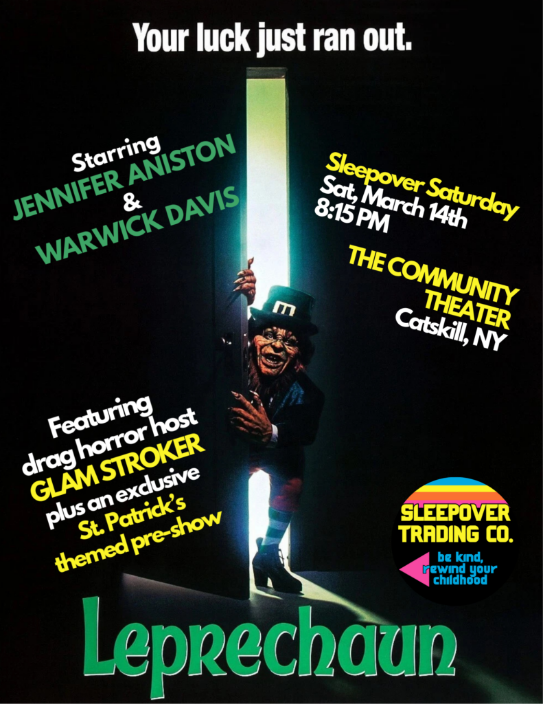 This March 14th, your luck just ran out. For the latest Sleepover Saturday, a vengeful, rhyming leprechaun (played by genre icon Warwick Davis), hunts down his missing gold and terrorizes a pre-Friends Jennifer Aniston. Before he went to space or the hood, see where this beloved horror comedy franchise began. The screening will feature drag horror host Glam Stroker plus an exclusive St. Patrick’s Day-themed preshow!